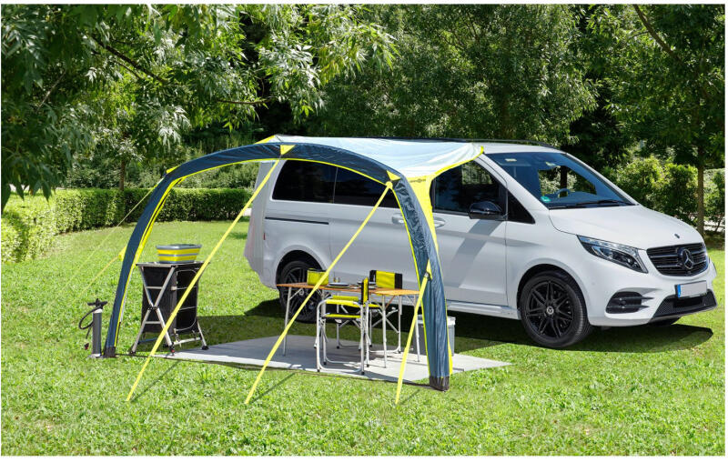 A Brunner márkájú Skia Campervan felfújható árnyékoló tökéletes választás pihenésre az autóban vagy a túraútvonalon töltött fárasztó nap után.   A Skia Campervan felfújható árnyékoló a Brunner cégtől ideális azok számára, akik kisbusszal és furgonnal szeretnek utazni. Az árnyékoló kiterjeszti az autó életterét, így olyan fedett területet hoz létre, amely pihenésre használható. A Skia árnyékoló védelmet nyújt a nappal és a kedvezőtlen időjárással szemben.