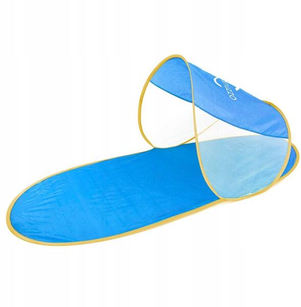 Strandsátor - szőnyeg, a strandon való pihenéshez használható. Gyors kihajtási lehetőség (önbehajtható). Tartós szintetikus anyagokból készült huzat, ellenáll a sérüléseknek. A sátrat nagyon könnyű tisztán tartani. Használat után a sátrat összecsukhatod és a készlethez tartozó praktikus táskában tárolhatod. Márka: Carruzzo - Anyaga: 180T poliészter + acélhuzal Méretek: - Felhasználható: (hossz x szélesség x magasság) kb. 140 x 70 x 50 cm - maximum: kb. összehajtás után 40 x 1 cm