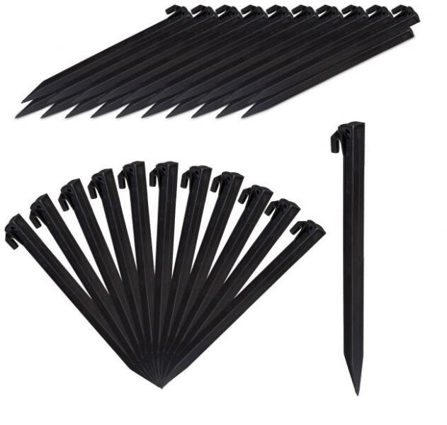 Könnyű és stabil cövek sátrakhoz, napellenzőkhöz, ponyvákhoz. Ideális puha vagy homokos talajokhoz. V alakú hegy a könnyű beszúráshoz, fűzőlyukakkal a kötél számára.