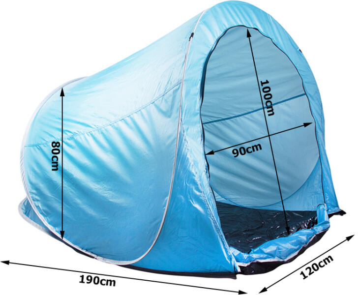 A multifunkcionális strandsátor a nap és a szél elleni védelemre szolgál. Az anyag speciális szerkezete visszaveri a káros UV-sugarakat. A sátor kihajtható padlóval van felszerelve, aminek köszönhetően a takaró vagy törölköző nem szennyeződik be homokkal. Kiváló szellőzés sűrű hálóval borított ablak formájában. A sátor két nagy külső zsebet tartalmaz, amelyekben elférnek a legszükségesebb nyári kütyük, pl. : fényvédő, telefon, kulcsok, újság, stb. TULAJDONSÁGOK: Masszív és tartós anyagokból készült keret Hálós ablak Tárolózsebek Funkcionalitás Gyorsan ki- és összecsukható Rögzítőcsapok x 6 Fogantyús huzat a kézben való hordozáshoz Szín: kék