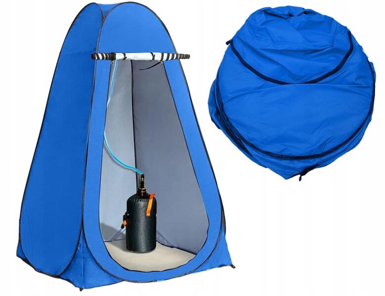 MŰSZAKI ADATOK: Kiváló minőség Összecsukva kis helyet foglal Alkalmazás: öltöző, zuhanykabin, WC stb. Belsejében praktikus zseb Vízálló Könnyen szállítható tokkal Kétoldalas cipzár Talajálló anyag Sátor méretei: 120cm x 120cm x 190cm A huzat mérete: 60cm x 60cm Szín: kék