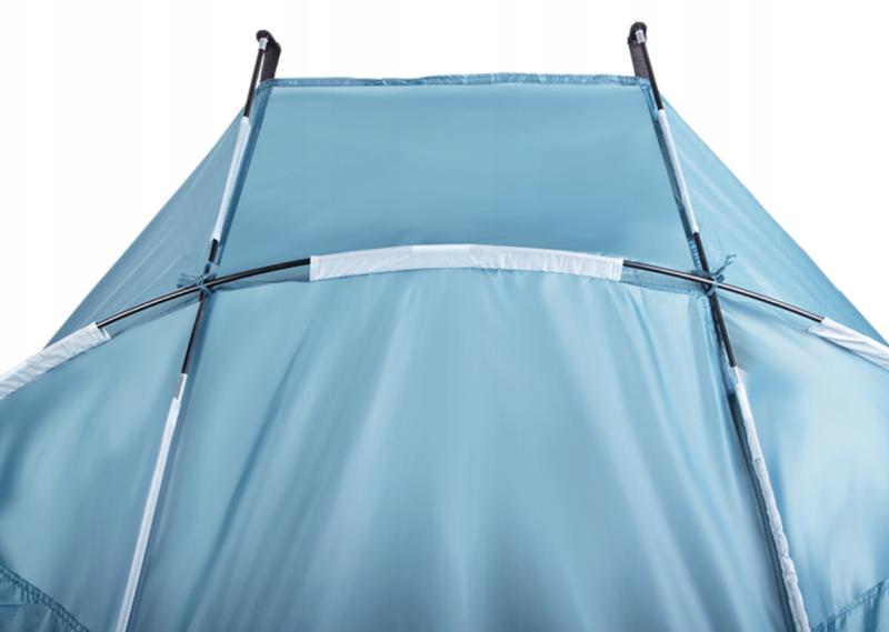• EGYSZERŰ ÖSSZEÁLLÍTÁS - ennek a strandsátnak kétségtelen előnye a nagyon gyors és könnyű kinyitása és összecsukása. A készlet két keretszegmensből áll, amelyeket egyszerűen össze kell kapcsolni és át kell vezetni a sátorra varrt alagutakon.